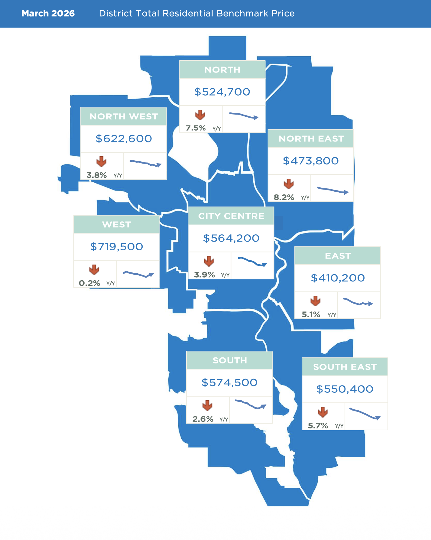 The total unadjusted benchmark price in the city was $565,600, up nearly one per cent compared to February but down by more than four per cent compared to last year. After the first quarter, benchmark prices posted modest to stable conditions for lower density homes. However, apartment condominium prices continued to slide, dropping another three per cent in the first quarter compared to the fourth quarter of last year.