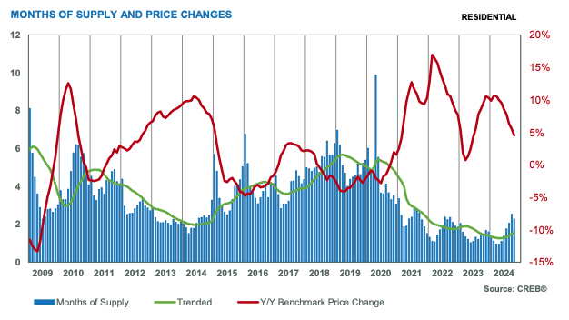 The gains in new listings relative to sales over the past six months have supported inventory gains in the city. As of October, 4,966 units were available, a significant improvement over the near-record low of 3,205 units reported last October. While inventories are starting to reach levels more consistent with long-term trends, the inventory composition has changed as nearly half of all the residential inventory is now priced above $600,000.
