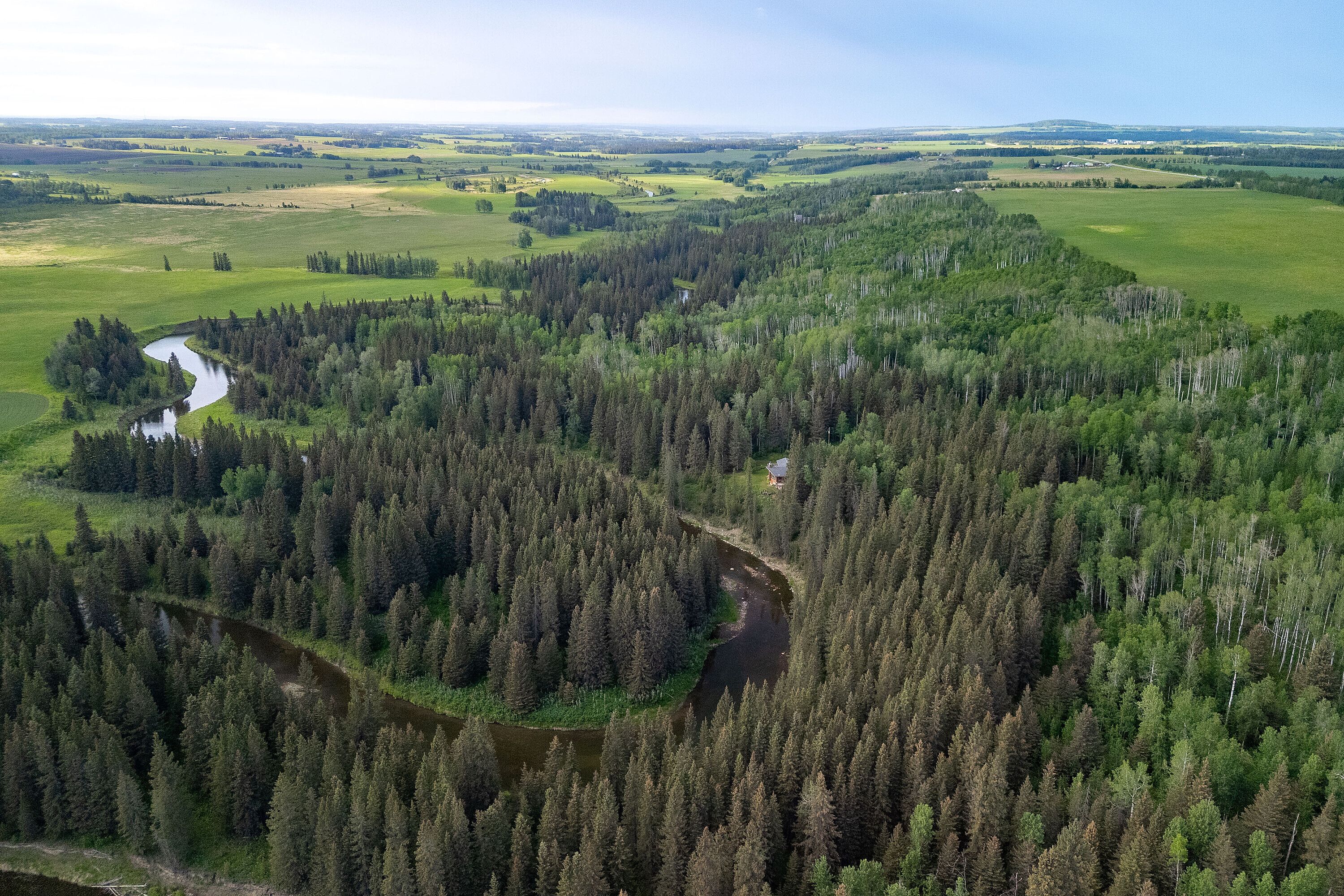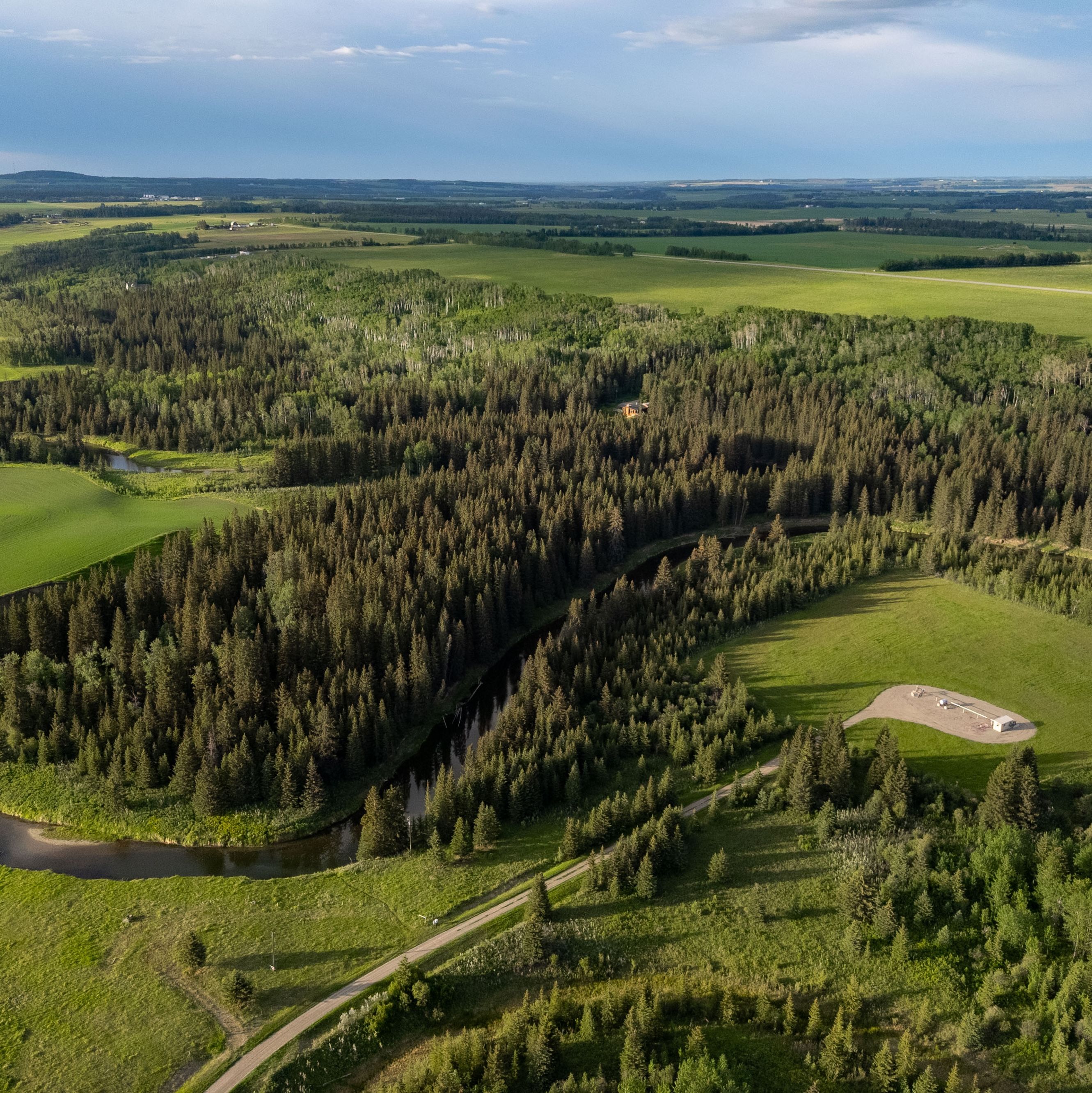Just south of Sundre, tucked away from the world yet close enough for effortless access, lies an acreage unlike anything else on the market — 105+ acres of untouched, private forest with more than one full kilometre of pristine Little Red Deer River frontage. This is not simply land. It is a sanctuary. A place where the sound of rushing water replaces city noise, where old-growth trees stand like quiet guardians, and where every sunrise feels like a moment stolen back from time.