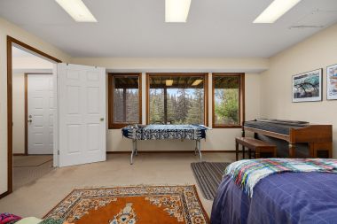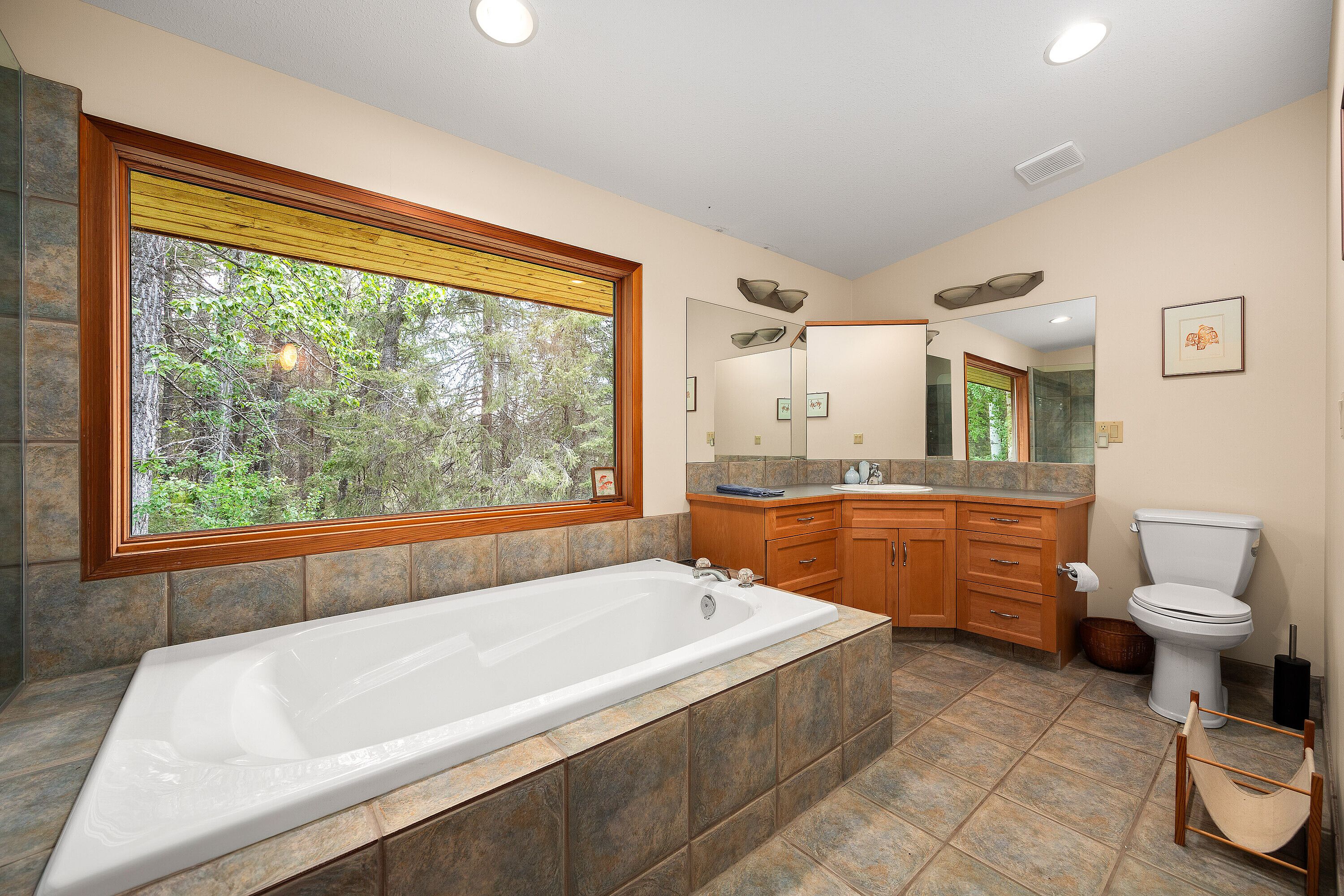 Upstairs, the spacious owner’s suite above the garage enjoys expansive forest views and a large spa-inspired ensuite. This versatile space could also function as a family room, media room, or be divided into two additional bedrooms depending on your needs.
