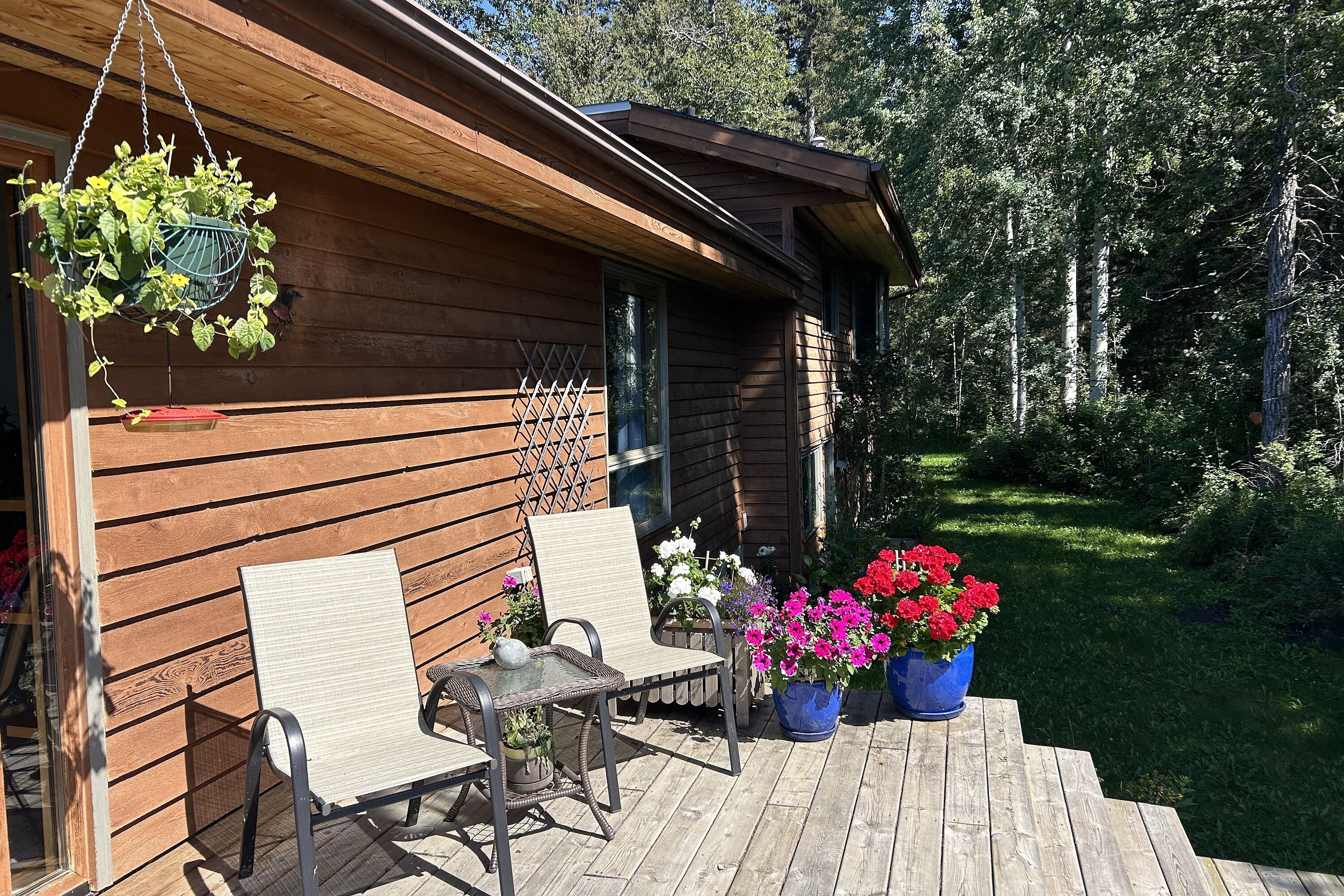 Trails wind from the house through old-growth forest and along the riverbank, inviting slow evening walks, family adventures, or quiet solitude. The land offers countless places to set up a hammock, a picnic blanket, or a favourite reading chair. With room for gardens, a greenhouse, or an orchard, it is easy to imagine harvesting vegetables, cutting fresh flowers, or tending raised beds under wide Alberta skies.